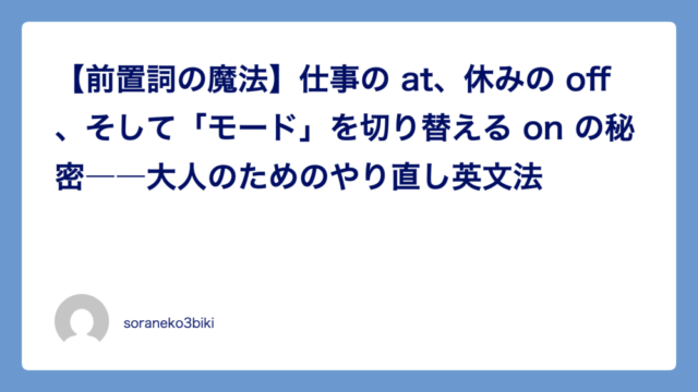 【前置詞の魔法】仕事の at、休みの off、そして「モード」を切り替える on の秘密――大人のためのやり直し英文法