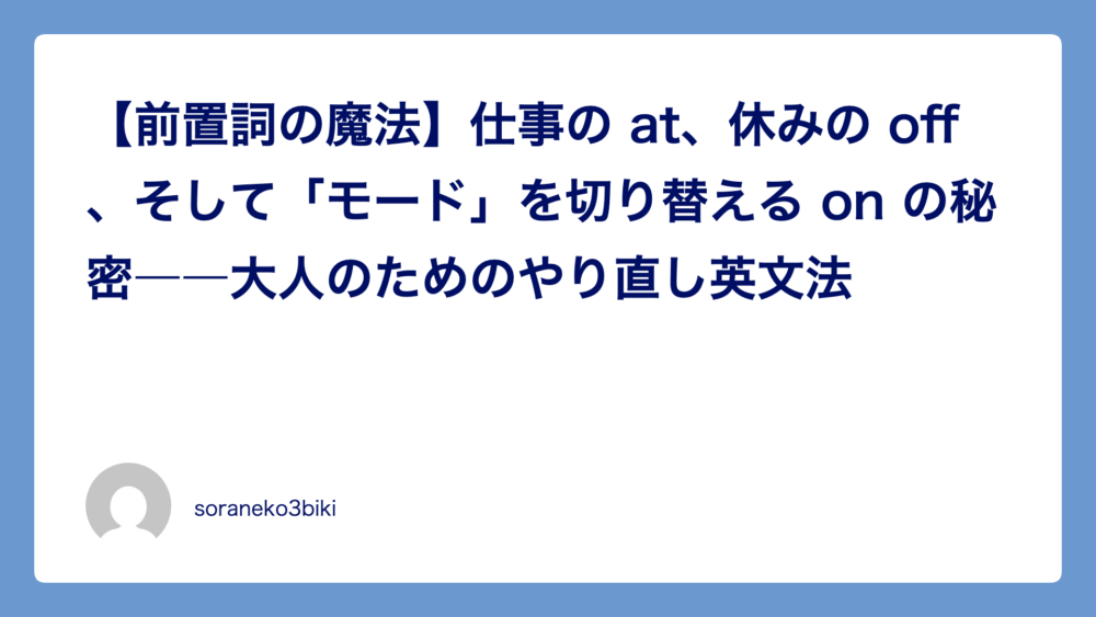 前置詞は、人の立ち位置・役割・モードを切り替えるスイッチなのです。