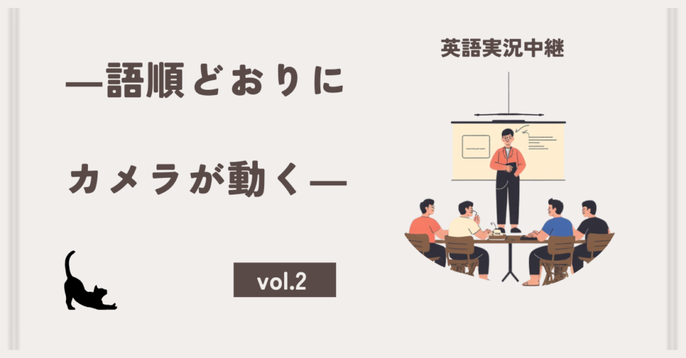 英語は語順どおりにカメラが動き、最後のフレームで Event が成立します。